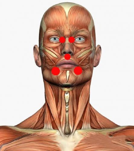 Так как активные зоны расположены по всему телу, иногда бывает неудобно их прорабатывать. Но если речь идёт о лице, то доступ к ним максимально прост. Ниже описаны важные точки, на которые стоит обратить внимание.