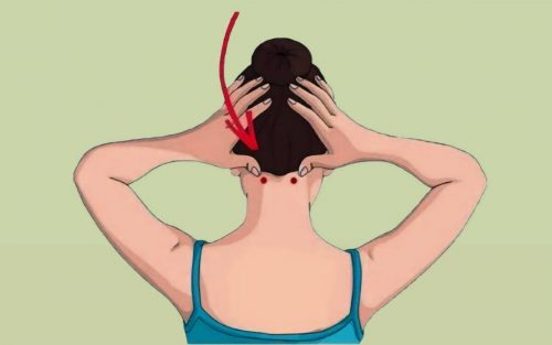 Для этого сядьте прямо, расположите большие пальцы на затылке (в области углублений у линии волос). Вытяните подбородок вперёд и немного вверх, затем медленно наклонитесь вперёд с выдохом. Можно ощутить лёгкое давление или дискомфорт, но впоследствии это снимает зажимы. Однако при проблемах с позвоночником или скачках давления такие манипуляции лучше не проводить.
