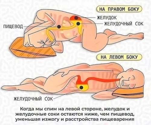Таким образом, сон на левом боку помогает защитить пищевод и другие органы от повреждений. Ведь ткани желудка приспособлены к кислой среде и имеют особую защиту, а вот пищевод и горло — нет. Именно поэтому при неправильном положении тела кислота может вызвать жжение и раздражение. При этом стоит помнить: организм не позволит долго вредить самому себе, и если положение становится слишком опасным, он инстинктивно перевернёт вас во сне.