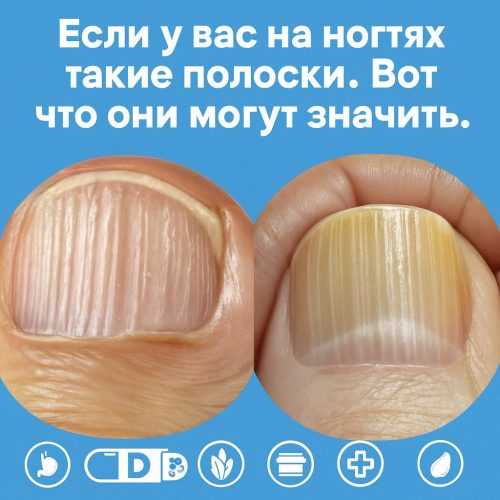 Нередко появление полос связано с нехваткой определённых витаминов и минералов. Для здоровья ногтей особенно важны: