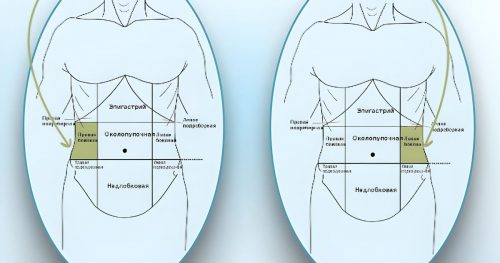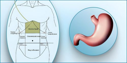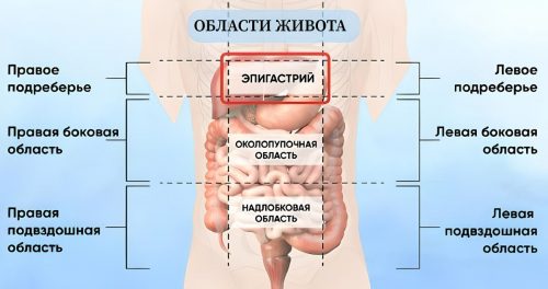 Эпигастральная зона — это область в центре туловища, сразу под грудиной, между рёбер.