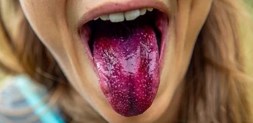 При нарушении работы печени сосочки языка атрофируются, и он приобретает насыщенный малиновый оттенок.
