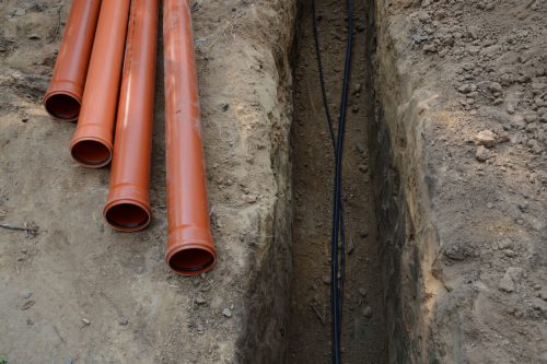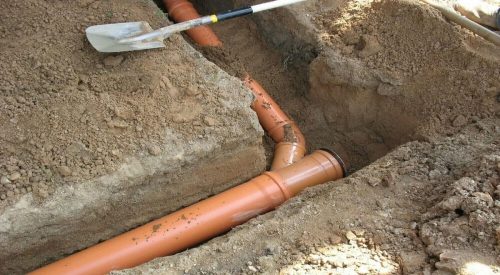 Выкапывать траншею «в человеческий рост» вовсе не обязательно. Это лишь зря потраченные деньги и силы. Намного важнее — соблюсти правильный уклон, подобрать оранжевые трубы нужного диаметра, сделать песчаную подушку и продумать плавные отводы. Всё остальное — второстепенные детали.