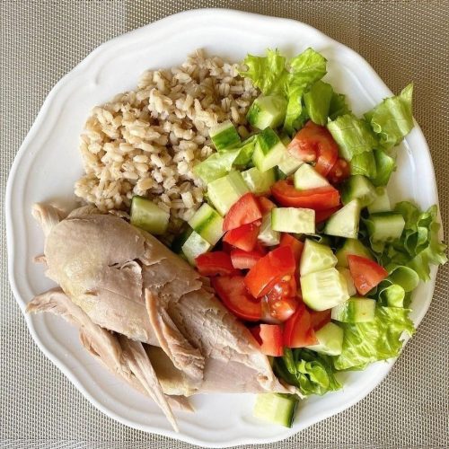 Белок — курица, индейка, кролик, яйца, нежирный творог.