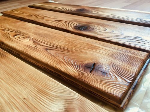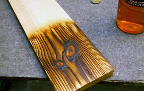 После обжига доску пропитывают горячим льняным маслом. Когда-то его можно было купить в любой деревенской лавке, сегодня — в любом строительном магазине. Масло нагревают в кастрюле или казане и наносят кистью, не жалея. Делают обычно два-три слоя, давая каждому хорошо впитаться.