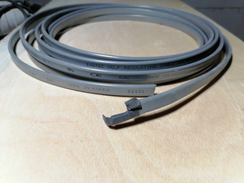Поэтому я остановился на втором варианте — саморегулирующемся греющем кабеле. Его особенность в том, что он самостоятельно изменяет интенсивность нагрева в зависимости от окружающей температуры и при этом не перегревается. Максимальная температура, которую он развивает, — около 60 °C.