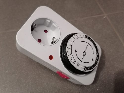 Поскольку мощность кабеля составляет 16 Вт на метр, а общая длина — около 6 м, суммарное энергопотребление получается примерно 100 Вт. Этого более чем достаточно, чтобы исключить образование конденсата. Однако, чтобы сократить расходы на электроэнергию, я дополнительно приобрёл механический розеточный таймер.
