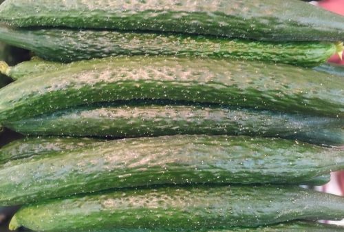 Плоды: длинные, изящные (до 40 см), тёмно-зелёные и невероятно сочные. Мякоть сладковатая, без пустот — отличны и в салатах, и для консервации.