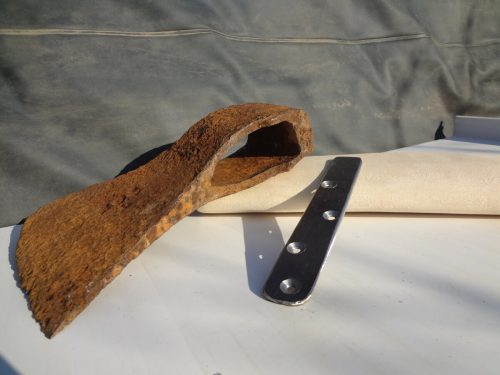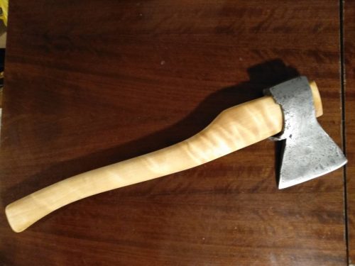Когда заготовка готова, надеваем голову топора на топорище, оставляя примерно 5–7 мм от края, и отмечаем линию карандашом. Далее аккуратно обтачиваем лишнее рашпилем, добиваясь плотного, но не чрезмерного прилегания. Не стоит спешить — если снять лишнего, исправить уже не получится. Рукоять должна входить плотно, но без сильного давления, примерно на сантиметр. Хорошо, если нижняя часть посадочного места чуть уже верхней — такой «обратный конус» не позволит головке со временем ослабнуть.