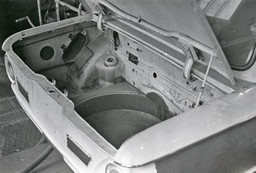 Після перенесення двигуна вперед багажник перемістили назад. У ньому передбачили нішу для запасного колеса, а загальний об’єм збільшився до 360 літрів. Щоб розмістити мотор спереду, інженери НАМІ фактично відрізали передню частину кузова серійного «Запорожця» і створили новий передній модуль.