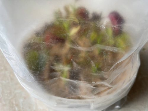 Спустя 3–4 недели начнётся образование корней. Ещё примерно через две недели укоренившиеся черенки можно рассаживать по отдельным стаканчикам с обычным цветочным грунтом.