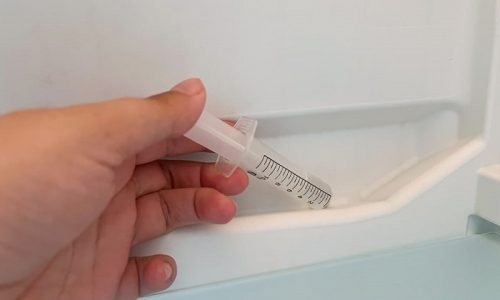 • Если этого мало, используйте шприц без иглы: наберите тёплую воду и под давлением введите её в отверстие, несколько раз повторив процедуру.