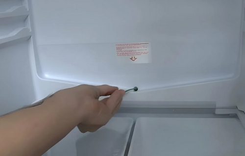 • Откройте холодильник, достаньте контейнеры и найдите дренаж — он расположен ниже уровня полки.
