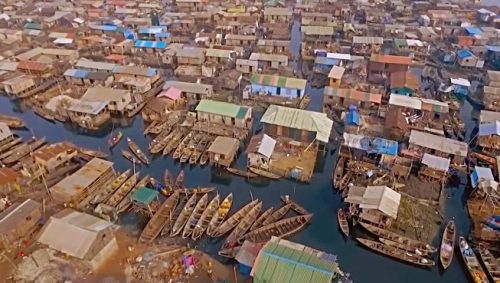 В лагуне огромного Лагоса, на хлипких опорах и мусорных платформах, вырос водный мир трущоб Макока. Более двухсот тысяч жителей — на плаву. Дома стоят на сваях, соединены узкими настилами из досок.