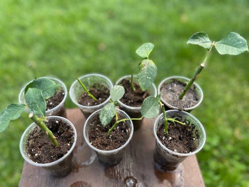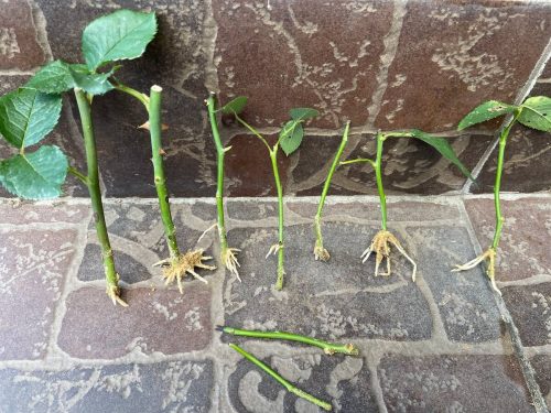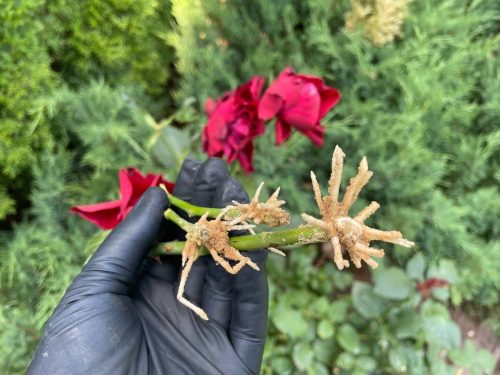В середине июля я решила поставить на укоренение черенки двух сортов чайно-гибридных роз — «Хоммаж а Барбара» и «Дольче Вита». Из-за весенних заморозков цветение у них началось позже обычного, поэтому и момент черенкования после срезки был вынужденно сдвинут.