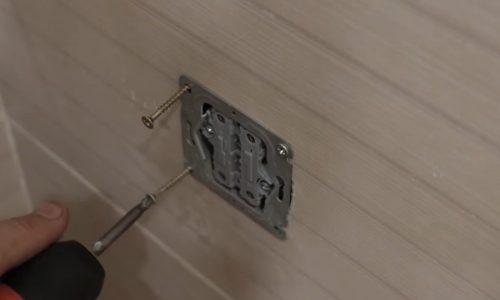 Если используете гипсовую смесь — через час можно устанавливать саму розетку. Если применяете плиточный клей — придётся подождать сутки. После этого розетка уже прикручивается болтами к подрозетнику. Но у старых моделей без внешней монтажной пластины такого способа крепления нет — они утоплены полностью внутрь и винты прикручивать попросту некуда.
