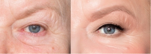 Что это дает: затемнение у корней ресниц визуально делает форму глаз более молодой, белки выглядят светлее, а радужка — выразительнее и насыщеннее.