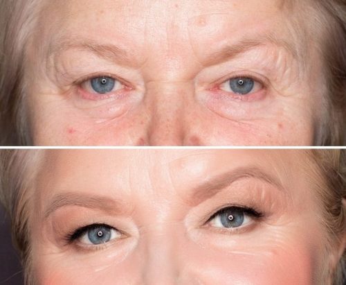 Первое, с чем сталкивается большинство женщин в возрасте, — нависшее верхнее веко. Оно утяжеляет взгляд, делая его более усталым. Чтобы исправить это, не игнорируйте область верхнего века — используйте тени немного темнее натурального цвета кожи. Иными словами, создавайте мягкую дымку вдоль орбитальной линии.