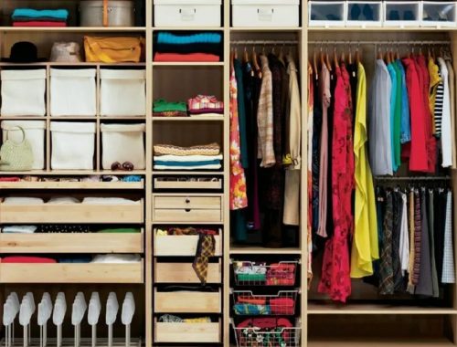 Поэтому вынимаем всё содержимое и протираем полки либо нашатырным стеклоочистителем, либо раствором уксуса (1 столовая ложка на стакан воды). Пока шкаф проветривается, перебираем вещи.