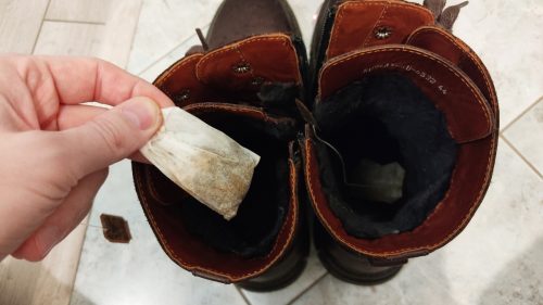 **Как-то вернувшись после долгой прогулки, я заметил, что от ботинок исходит весьма сомнительный аромат. Жена посоветовала положить внутрь уже использованные, но высохшие чайные пакетики. Попробовал — и был приятно удивлён. Чай действительно впитывает лишнюю влагу и устраняет запахи, особенно если пакетики были зелёного чая.