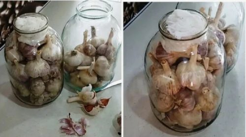Пшеничная мука отлично впитывает лишнюю влагу. Головки пересыпают мукой и укладывают в контейнеры. Есть и другой вариант: разобрать чеснок на дольки, пересыпать мукой и хранить в банках.