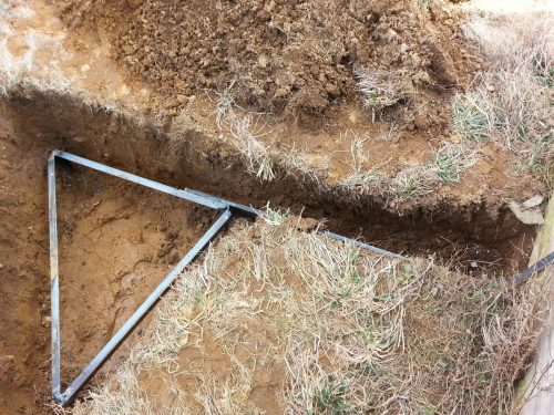 Для заземления часто берут арматуру 16 мм или металлический уголок. Уголок входит в почву легче, но глубина забивки должна быть не менее 1,5 метра от уровня нижней точки вырытой ямы. В сухих грунтах приходится заглублять ещё сильнее. Соединяют электроды металлической полосой сечением 40×4 мм.