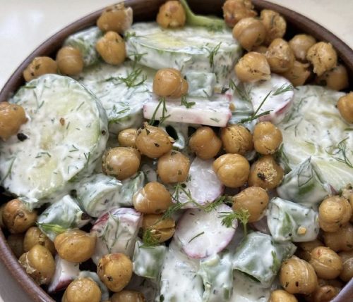 Нут, фасоль и чечевица дают не только белок, но и магний. Самый простой вариант — лёгкий салат с зеленью и овощами, который подходит и для обеда, и для ужина.