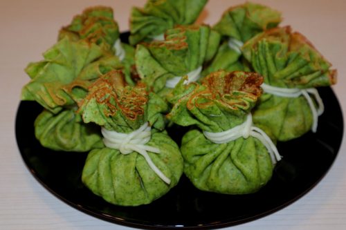 Блинные мешочки со шпинатом и начинкой