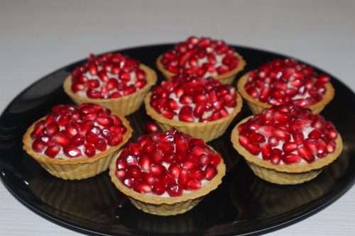 Тарталетки с курицей, сыром, орехами и гранатом