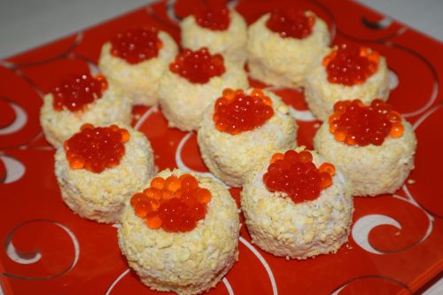 Шарики с горбушей и «красной икрой»