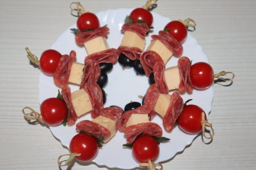 Канапе с колбасой на шпажках