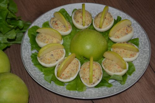Фаршированные яйца с селёдкой и яблоком