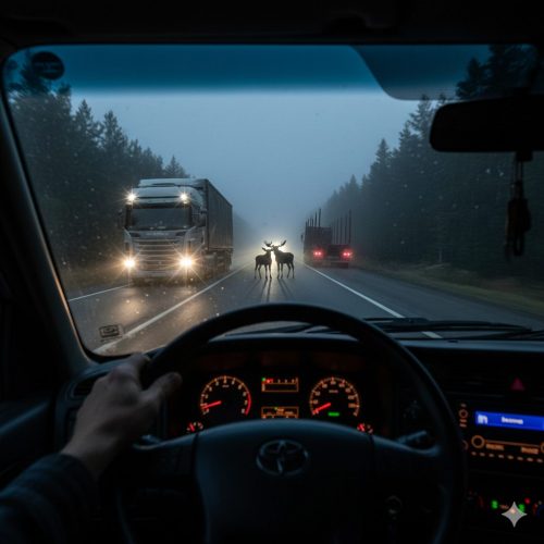 Зазвичай моргають двічі — натяк на камери чи патруль. Але три спалахи? Я інстинктивно скинув швидкість зі 110 до 60 і притиснувся ближче до узбіччя. І не дарма. За якихось двісті метрів, одразу після крутого повороту, на моїй смузі стояв заглухлий лісовоз без габаритів, а просто перед ним на дорогу вискочила лосиця з телям.