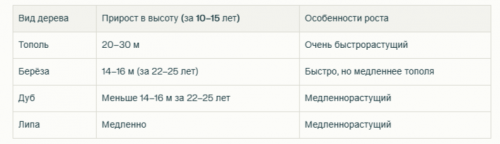 По скорости роста тополь практически не имеет конкурентов в умеренном климате. За десять лет он способен вытянуться более чем на 20 метров, прибавляя ежегодно по 2–4 метра. Для сравнения: берёза к 22 годам достигает около 14 метров, а дуб, липа и клён растут почти втрое медленнее.