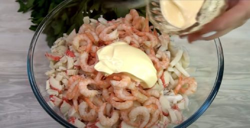 Да, копчёные кальмары или креветки придадут блюду новый вкус, но салат станет более насыщенным. Солите осторожно.