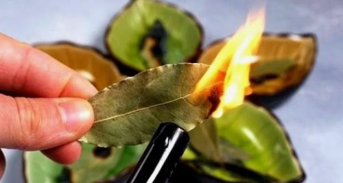 Важно не устраивать полноценное горение, а лишь слегка подпаливать лист, чтобы он тлел. Достаточно взять один-два сухих лавровых листа, положить их на блюдце или в жаропрочную ёмкость, поджечь и сразу задуть пламя. Дать листу тлеть 30–60 секунд, после чего обязательно проветрить помещение.