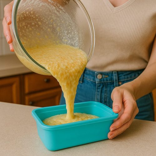 - Смажьте форму каплей растительного масла — готовый кусок легко вынется и не сломается.
