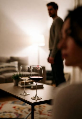 На журнальном столике у дивана стояли два бокала с красным вином. Один был почти пуст, а на его краю отчётливо виднелся след помады. Оттенок — насыщенно вишнёвый, такой, которым Нина не пользовалась уже несколько лет. Она давно выбирала спокойные нюдовые тона.
