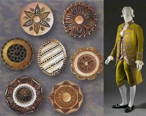 Пуговицы изготавливали из золота, серебра, слоновой кости и других дорогих материалов. Их количество и изящество прямо указывали на социальный статус владельца. Такой элемент одежды могли позволить себе только знатные мужчины и дамы, тогда как простолюдины ещё долго носили наряды с завязками или в лучшем случае с грубыми деревянными пуговицами. При этом благородным женщинам было не принято одеваться самостоятельно — им помогали служанки. Эта традиция сложилась ещё в эпоху корсетов, которые требовали посторонней помощи при затягивании.