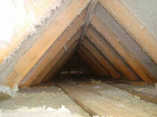 Когда хозяин вместе с вызванной бригадой строителей поднялся на чердак, их ждала весьма наглядная картина — самая настоящая «весна» под крышей. Всё подкровельное пространство было сырым, а на деревянных элементах в некоторых местах уже начала появляться плесень.