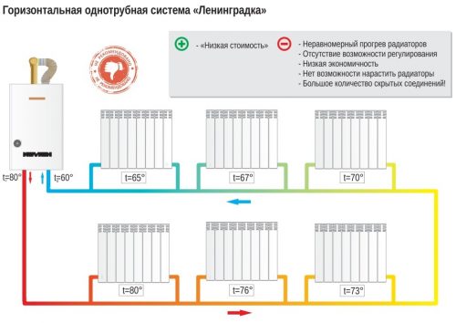 Благодаря этим преимуществам система быстро прижилась и долгое время применялась даже при строительстве новых многоквартирных домов. Если вы живёте в доме, возведённом до 1970-х годов, велика вероятность, что отопление там до сих пор выполнено по схеме «Ленинградка». В современных высотках, впрочем, уже используют другие решения.