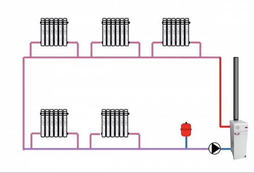Если говорить о плюсах, то помимо простоты конструкции и минимальной материалоёмкости стоит отметить ещё несколько моментов. Такая система способна работать даже при низком давлении, в ней отсутствует сложная и дорогая запорная арматура. Она вполне оправдана для небольших дачных домов площадью до 70 квадратных метров, а также для гаражей или мастерских, где устанавливают всего три–четыре радиатора.