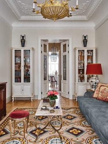 Эта выразительная квартира расположена в бывшем доходном доме, возведённом в 1910 году. Центральный район и богатая история здания буквально читаются в интерьере: стоит переступить порог — и возникает ощущение путешествия во времени, словно вы оказались в начале прошлого века.