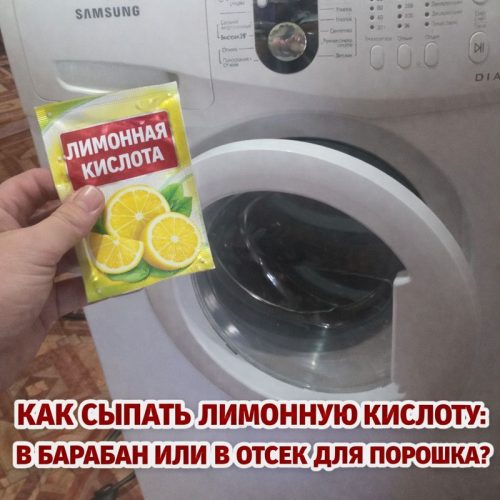 Загрузка. Кислоту можно засыпать прямо в барабан либо поместить в отсек для основного стирального порошка.