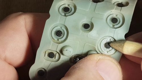 Чтобы продлить эффект, после очистки я наносил на контактные поверхности графитовое покрытие. Самый простой способ — воспользоваться обычным карандашом. Можно натереть грифель ножом и слегка смазать площадки или просто несколько раз провести карандашом по контактной стороне кнопок. Графит улучшает проводимость и делает контакт более надёжным.