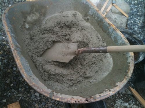 После этого добавляют цемент. Он равномерно растворяется в воде, покрывает щебень и формирует правильную структуру смеси. Затем досыпают оставшийся щебень и только после хорошего перемешивания вводят песок — не больше трёх вёдер.