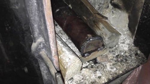 Когда всё хорошо прогревается, вода внутри трубы начинает превращаться в пар. Он выходит через мелкие отверстия, равномерно распределяется в топке, поддерживает стабильную температуру и замедляет сгорание древесины. В результате топливо тлеет дольше и отдаёт больше полезного тепла.