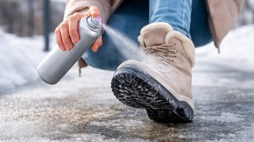 Чтобы зимой снизить риск падений на льду, важно заранее позаботиться о подошве обуви. Если под рукой нет специальной пары с противоскользящим покрытием, выручить может простой бытовой приём — обычный лак для волос.