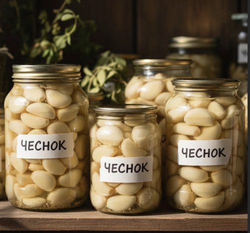 Чеснок в стеклянных банках