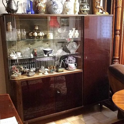 Если стенка служила практичным хранилищем, то сервант выполнял роль демонстрации. За стеклом находились праздничные наборы, хрусталь, декоративные предметы.